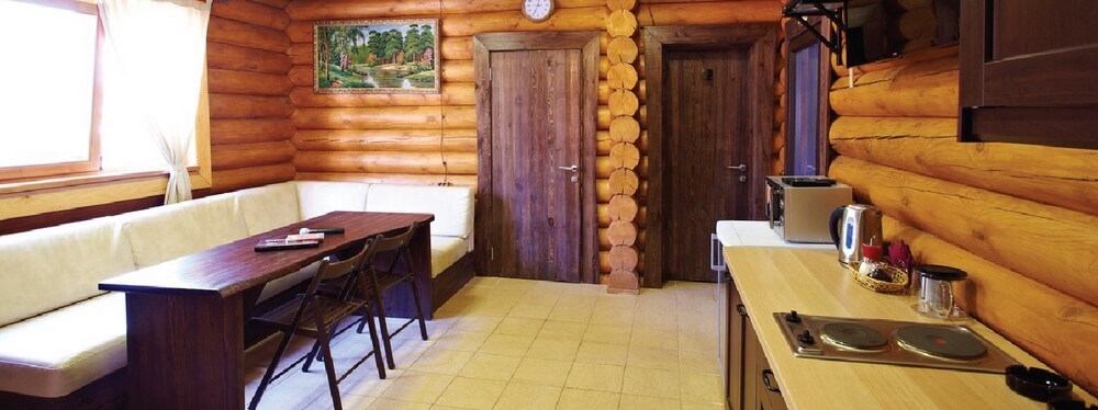 С друзьями можно посидеть в просторной гостиной, которая, кстати, совмещена с полностью оборудованной кухней (посуда, приборы - все есть). Для развлечений предусмотрены: караоке, настольные игры, гитара, светомузыка. Любителям же более спокойного отдыха придутся по вкусу наши комнаты отдыха с кроватями из натурального дуба.