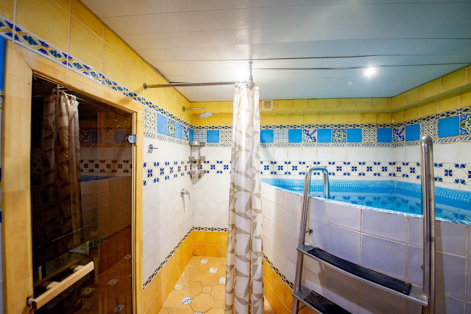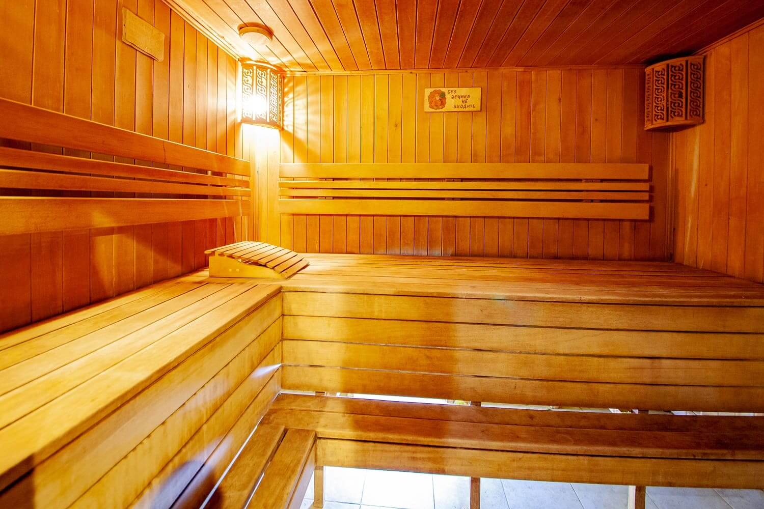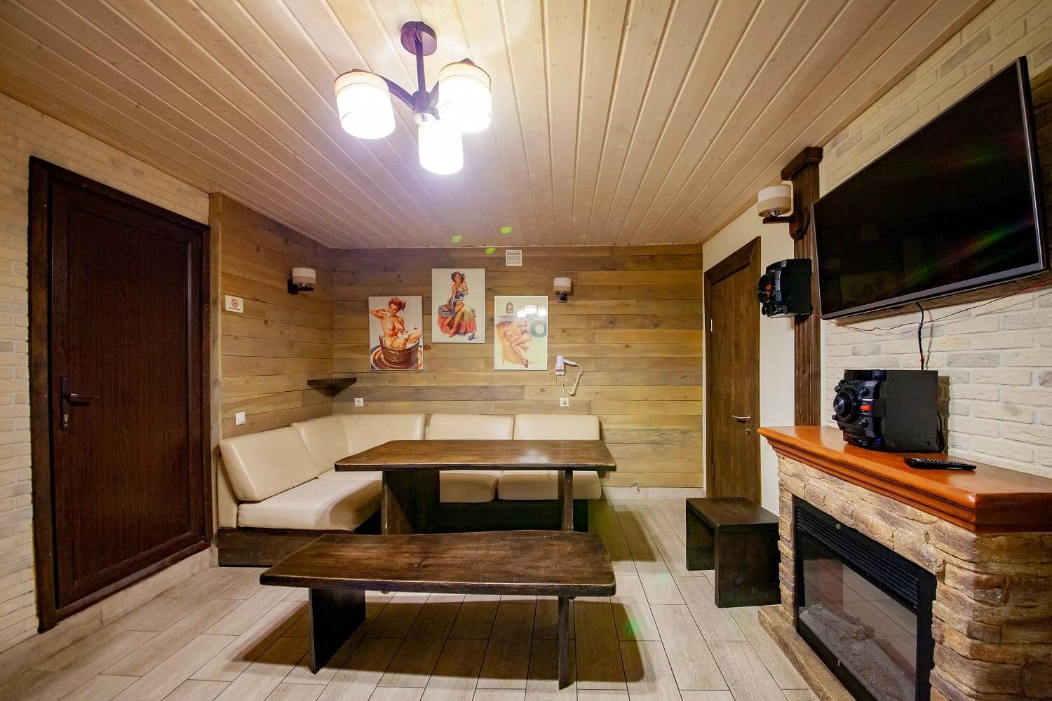 Еще не войдя в номер, можно сразу увидеть хорошо оборудованную мангальную зону для жарки шашлыка. В номере же есть хорошая русская парная из кедра, идеальная для прогрева и парных процедур (веники в наличии). Сразу при выходе из парилки, можно окунуться в холодную купель.